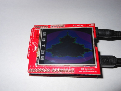 chipKIT PIC32 JavaPosted: January 1, 2016 Introduction I've been working on adding MIPS32 (extended to Microchip's PIC32 microcontrollers) to Java Grinder so I can compile Java class files into native PIC32 programs. I had this chipKIT Uno32 laying around for a while (seems they don't make this board anymore) so I used this as my test board. Took some work figuring out how to program the board with Linux without using their IDE and to write a straight assembly language program for it. More below on how I got that working. The API and MIPS32 generation is still a work in progress. More to come later. The source code for the demo is in the Java Grinder repository. Related Projects @mikekohn.net Pictures Above is a picture of a 4D Systems 4Display-Shield-22 LCD Display Shield. I think hardware-wise, this wasn't compatible with my ChipKit so it really doesn't work as well as it should. I might try getting another display later and trying again. Maybe even a newer ChipKit. The source is here: Display.java All of the LCD setup code was copied from the 4D Systems sample code. Videos Running the sample program LedBlink.java Full video: https://youtu.be/HL4SR5Z97_g The source code to the demo LedBlink.java Explanation So the first step was to write a straight forward assembly language program, assemble it, and figure out how to upload it to the board. So I already had MIPS32 support in naken_asm, but I never tested it before. So I started by writing a set of automated tests to make sure the output of every instruction from naken_asm matches the output from pic32-as which was distributed with chipKIT's MPIDE. I then wrote a test program that would turn the 2 LED's on the board on or off: chipkit.asm So when I did this I was a bit confused of what .org should be. According to the PIC32 documentation, the physical start of Program Flash is 0x1d000000. The start of the virtual memory for Program Flash is 0x9d000000. So which one was I supposed to use? Also I couldn't get avrdude to write my hexfile to the flash of the device. I ended up getting it to work with pic32prog. To figure out the correct .org to use, I compiled a small program in C and disassembled it with naken_util. Ends up the correct .org (I'm assuming due to way the chipKIT's bootloader works) is 0x1d001000. Anyway, after getting my first straight assembly program running on the chipKIT, the next task was to get a small Java program to compile. I already had all the files set up for doing MIPS32. I extended it with a PIC32 class that sets the correct .org and ramstart variables and such for the PIC32. I had to add a bunch of code to the MIPS32.cxx file since it was pretty much empty. Over this weekend (May 1, 2016) I added a simulator for MIPS32 in naken_asm so I can run the same automated testing in Java Grinder for MIPS that is run for MSP430. I think got Mandelbrots generating on an LCD like I did with the Java dsPIC Mandelbrots project.